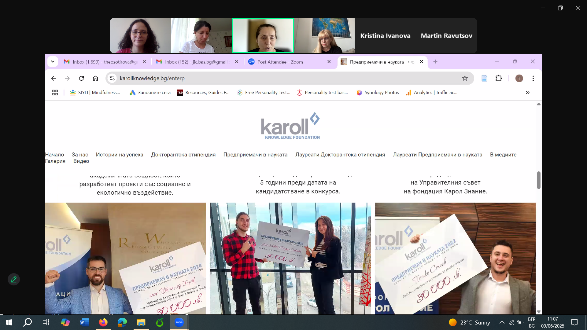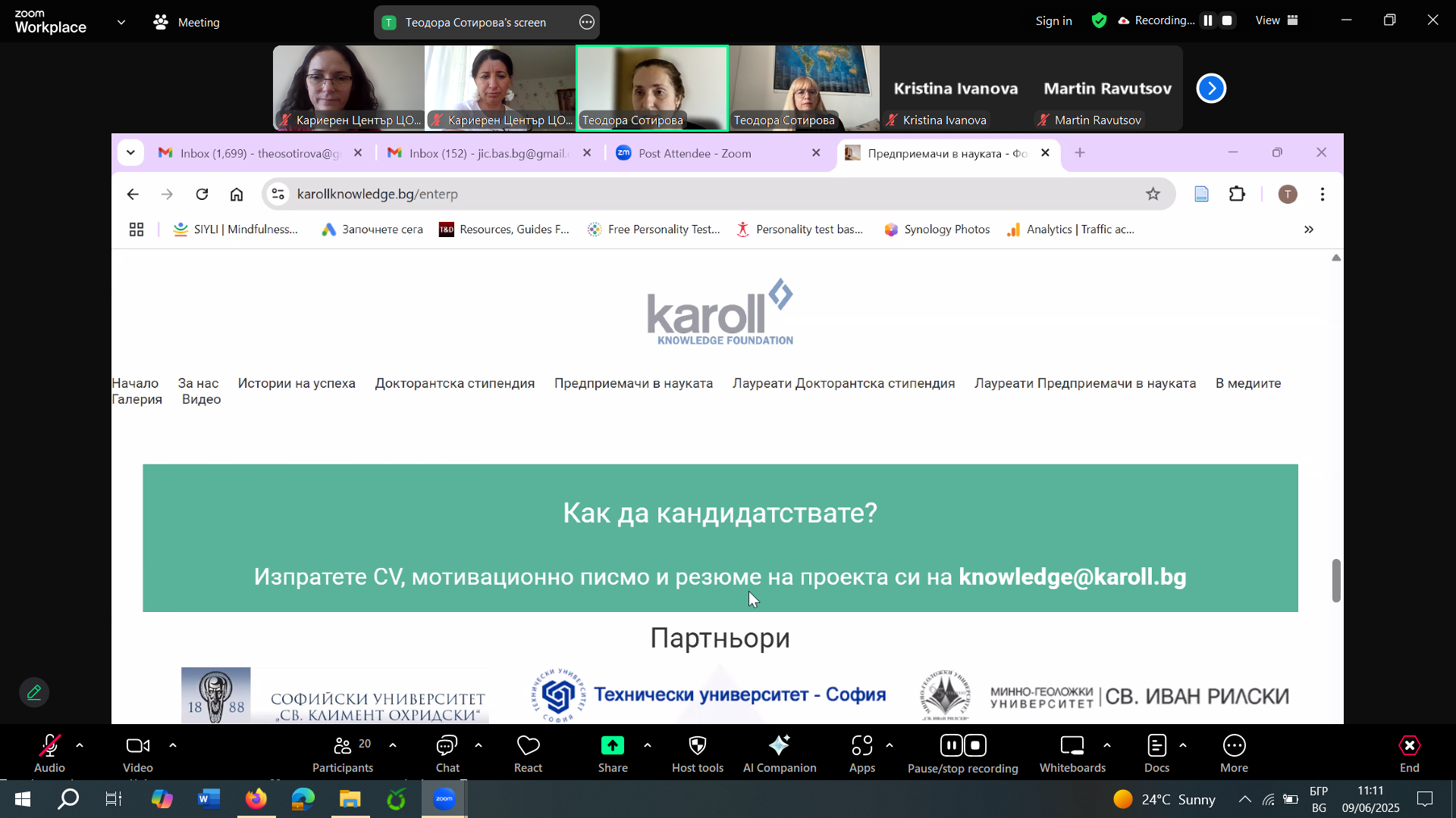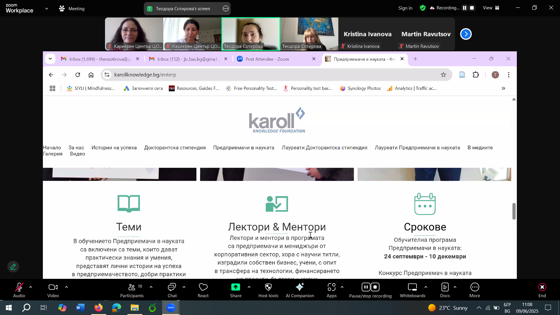 УЕБИНАР на тема: ИНФОРМАЦИОННА СРЕЩА, ПОСВЕТЕНА НА ПРОГРАМА "ПРЕДПРИЕМАЧИ В НАУКАТА" НА ФОНДАЦИЯ "КАРОЛ ЗНАНИЕ"